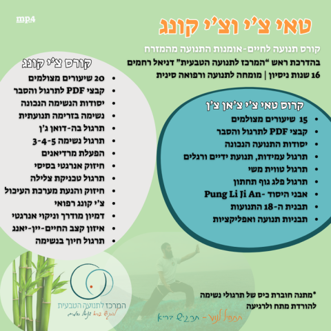 הקורס כולל קורס צ’י קונג למתאמן המתחיל-עד למתאמן וותיק!