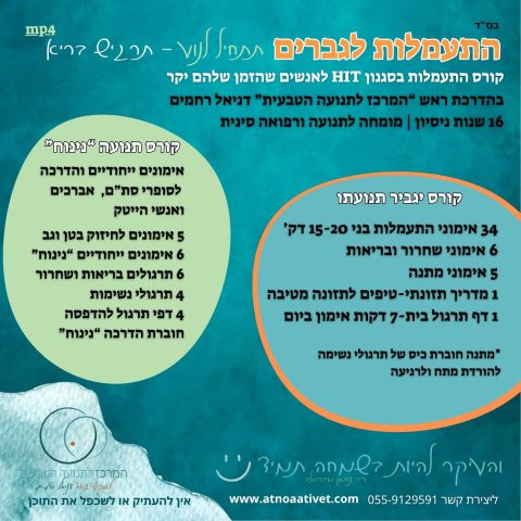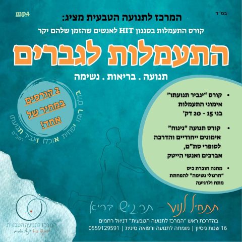 לאחר מאות פניות בבקשה ללמידה במרכז המרכז לתנועה הטבעית מציג: “יגביר תנועתו” הקורס הדיגיטלי הראשון מסוגו בעולם! נגיש לכל אחד בכל זמן ובייחוד בכל מקום! במיוחד למי שאין לו זמן ופנאי